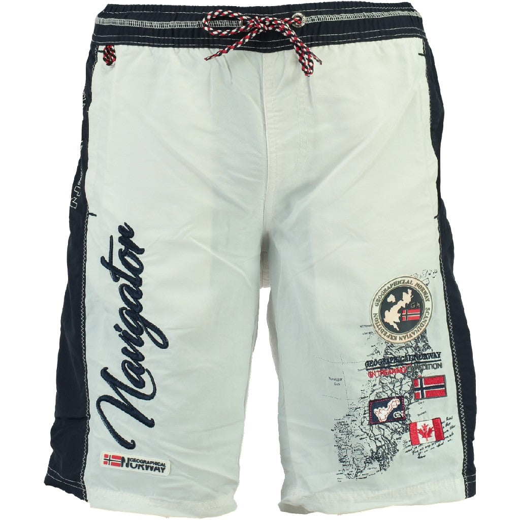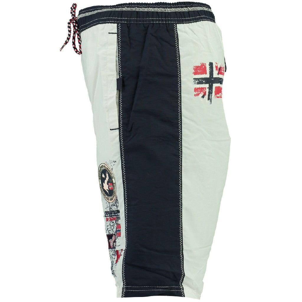 Bañador para hombre GEOGRAPHICAL NORWAY con impresiones propias de la marca tanto en la parte delantera como trasera. En esta última zona, contiene un bolsillo, además de la bandera propia de la marca.