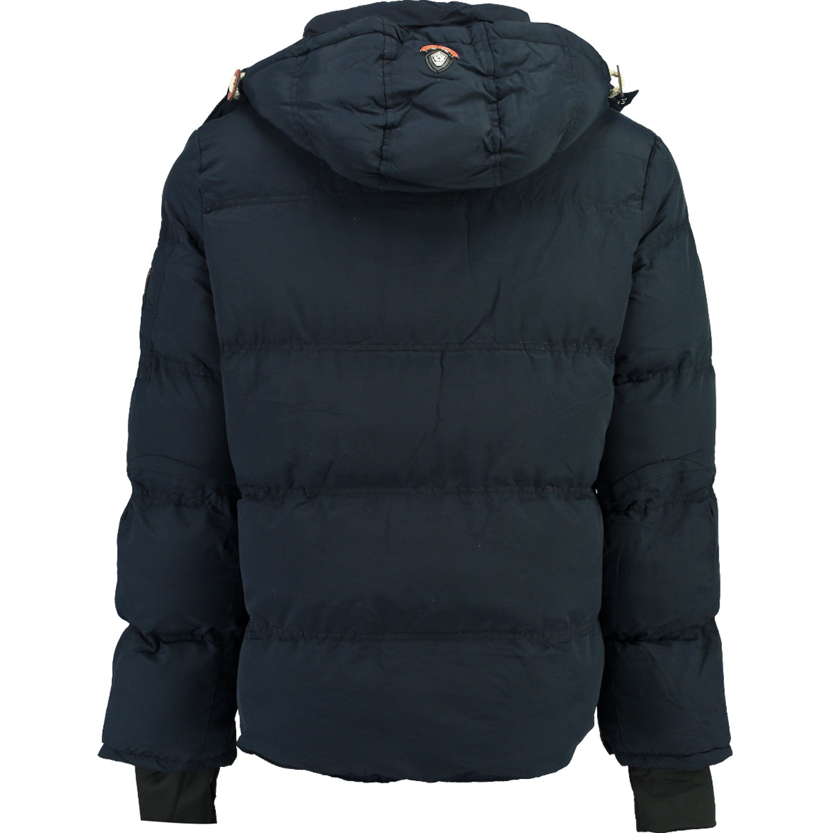 Parka de hombre con capucha desmontable y cuello recto, bolsillos en la parte delantera y en las mangas. Además, tiene un parche PVC en el pecho y en la capucha.