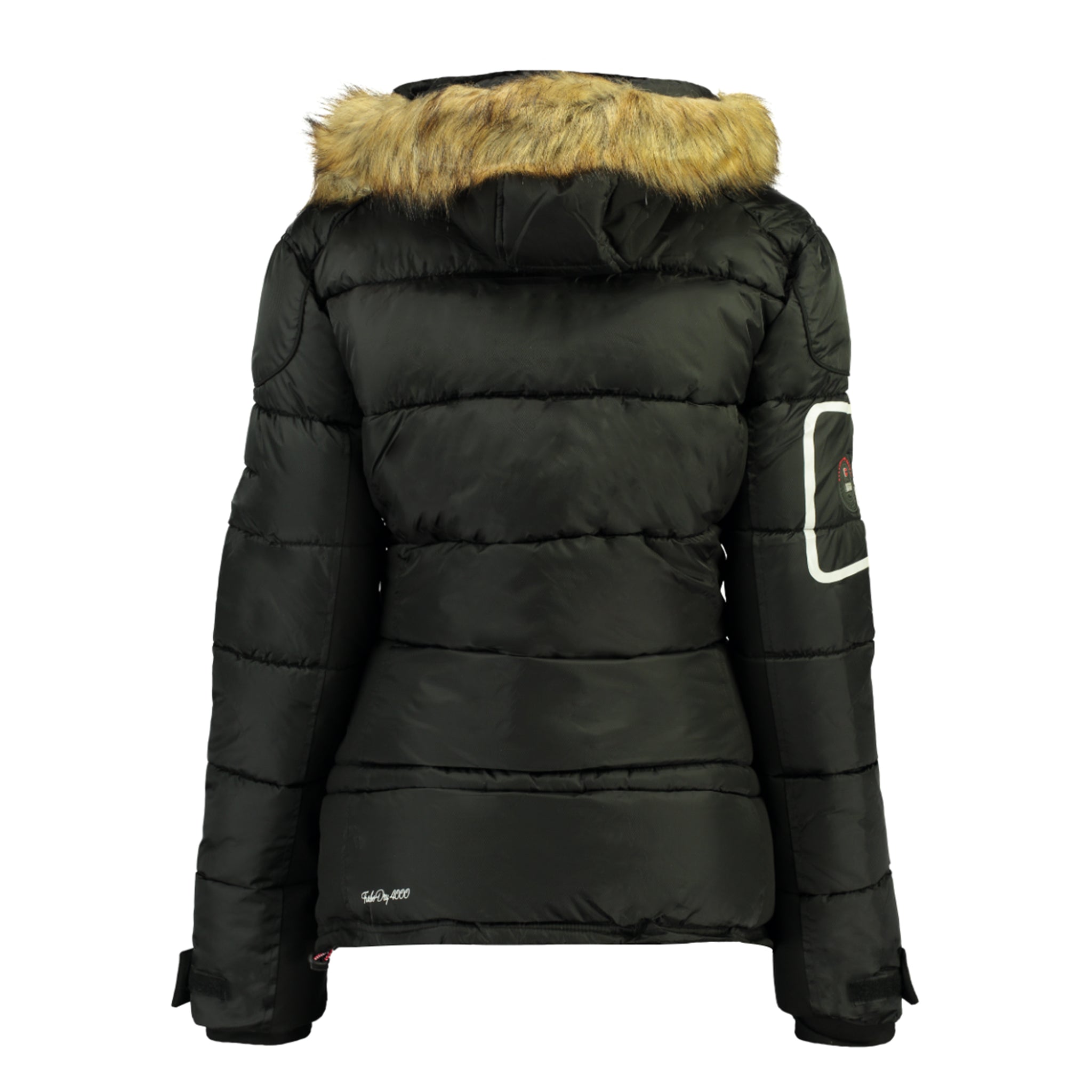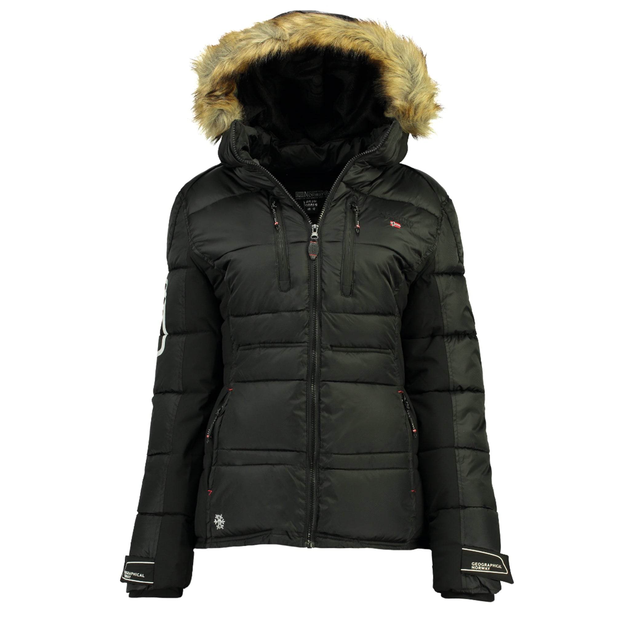 Chaqueta GEOGRAPHICAL NORWAY de mujer con apertura central delantera con cremallera y dos bolsillos en la zona del pecho. Este modelo presenta una serie de bordados propios de la marca GEOGRAPHICAL NORWAY tanto en la zona del pecho como en la manga izqui