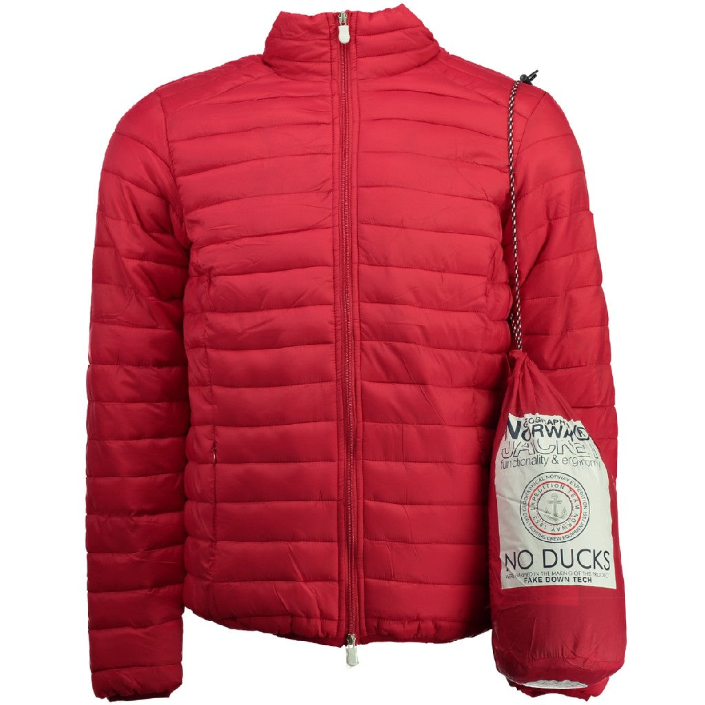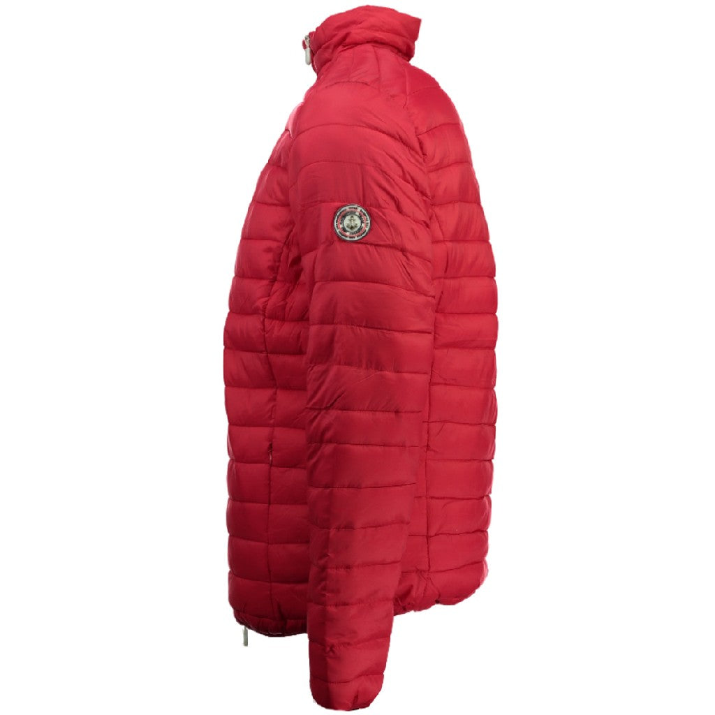 Chaqueta de niño ligera acolchada en color rojo, dispone de una bolsa con impresiones de la marca para guardar la prenda. Insignia PVC y bolsillos en la parte delantera.